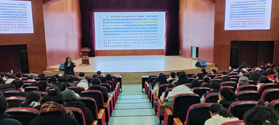随后,副校长许玲玲重点围绕本科毕业论文的科研诚信问题进行了详细阐述。她指出,在毕业论文的撰写过程中,必须严格遵守科研诚信原则,确保数据的真实性、方法的科学性。她鼓励同学们在毕业论文撰写过程中,要秉持求真务实的科学精神,树立正确的学术观念,培养良好的学术习惯,为未来的学术生涯打下坚实的基础。