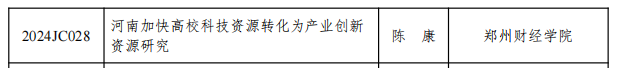 4月28日,经河南省政府决策研究课题招标领导小组审核批准,我校马克思主义学院陈康老师主持的《河南加快高校科技资源转化为产业创新资源研究》课题顺利获准结项。